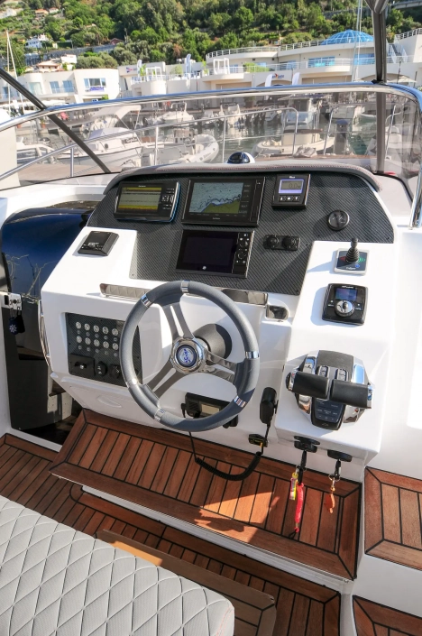 But it is internally where the 330 WA holds the biggest surprises, with a significant cabin height, a large bed in the forward cabin and a second guest bed towards the stern. The separate bathroom is also innovative, with a sliding dark tinted glass door, providing total privacy inside.